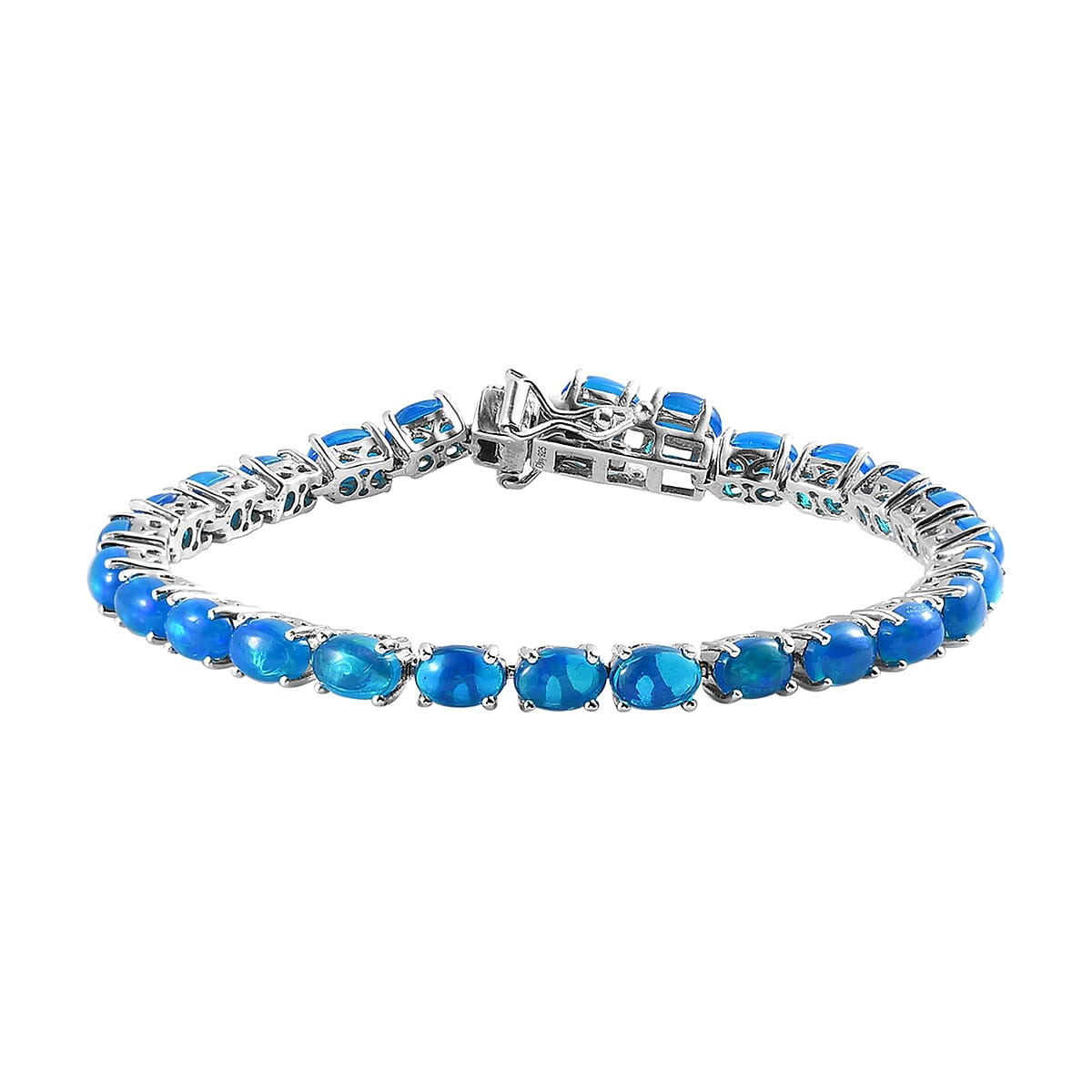 Premium Paraiba Blue Ethiopian Opal Tennis Bracelet in Platinum Over Sterling Silver (7.25 In) 10.85 Grams 8.80 ctw