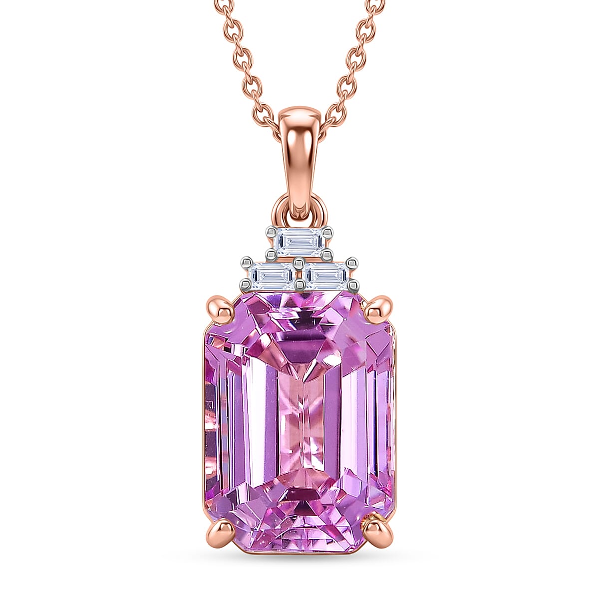 Premium Patroke Kunzite and Luxuriant Lab Grown Diamond E-F VS 9.50 ctw Pendant Necklace in 10K Rose Gold 20 Inches