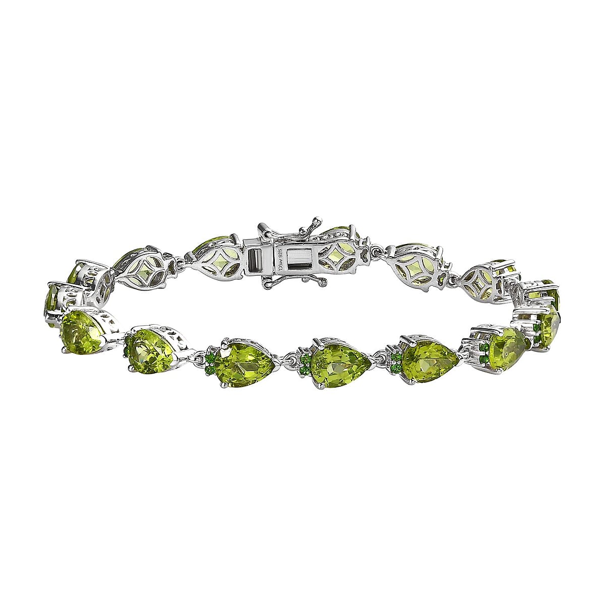 Premium Peridot and Chrome Diopside Bracelet in Rhodium Over Sterling Silver (7.25 In) 18.50 ctw