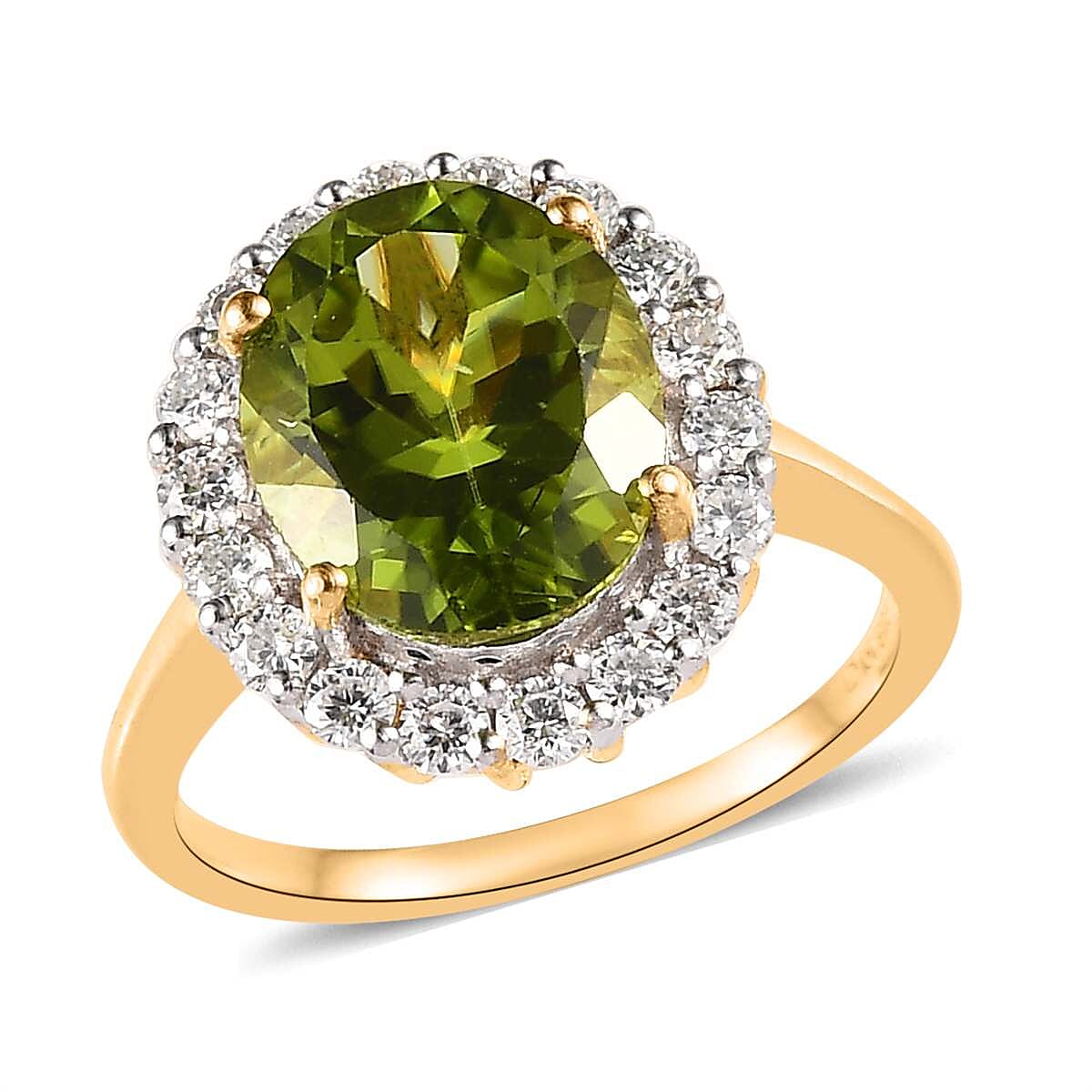 Premium Peridot and Moissanite Halo Ring in Vermeil Yellow Gold Over Sterling Silver (Size 5.0) 4.10 ctw