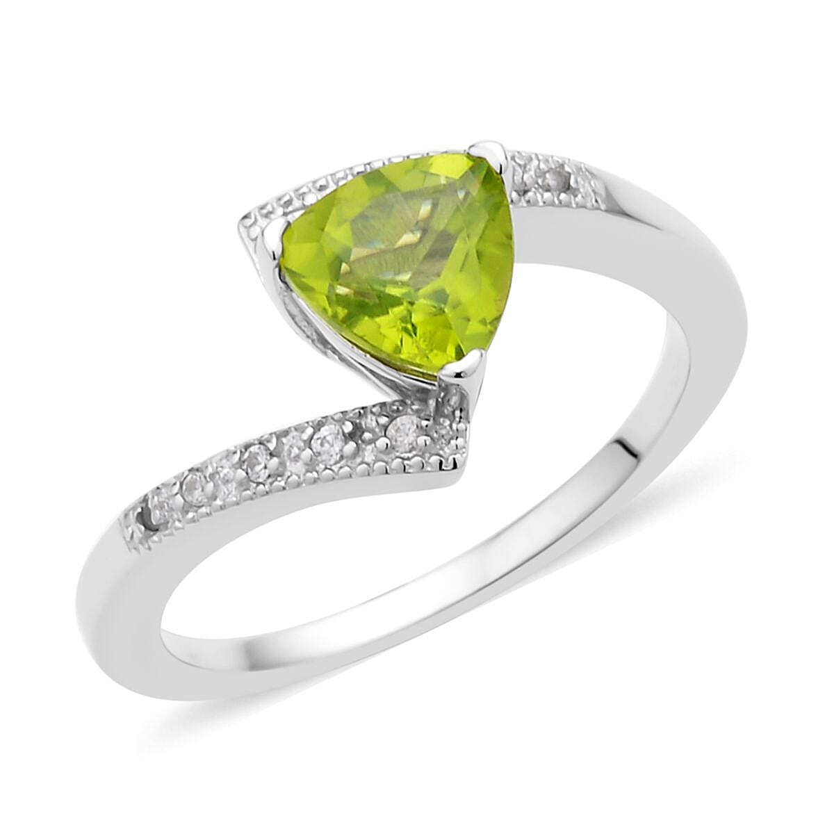 Premium Peridot and Natural White Zircon Fancy Ring in Rhodium Over Sterling Silver (Size 5.0) 1.40 ctw