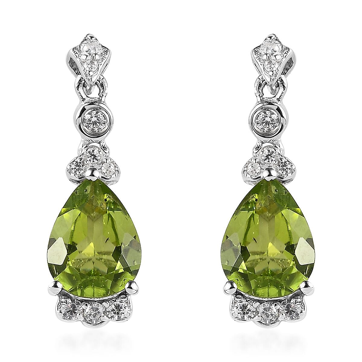 Premium Peridot and White Zircon Drop Earrings in Rhodium Over Sterling Silver 3.70 ctw