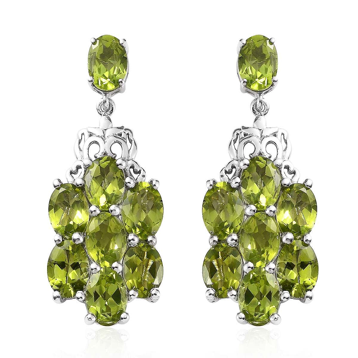 Premium Peridot Floral Dangle Earrings in Platinum Over Sterling Silver 12.50 ctw