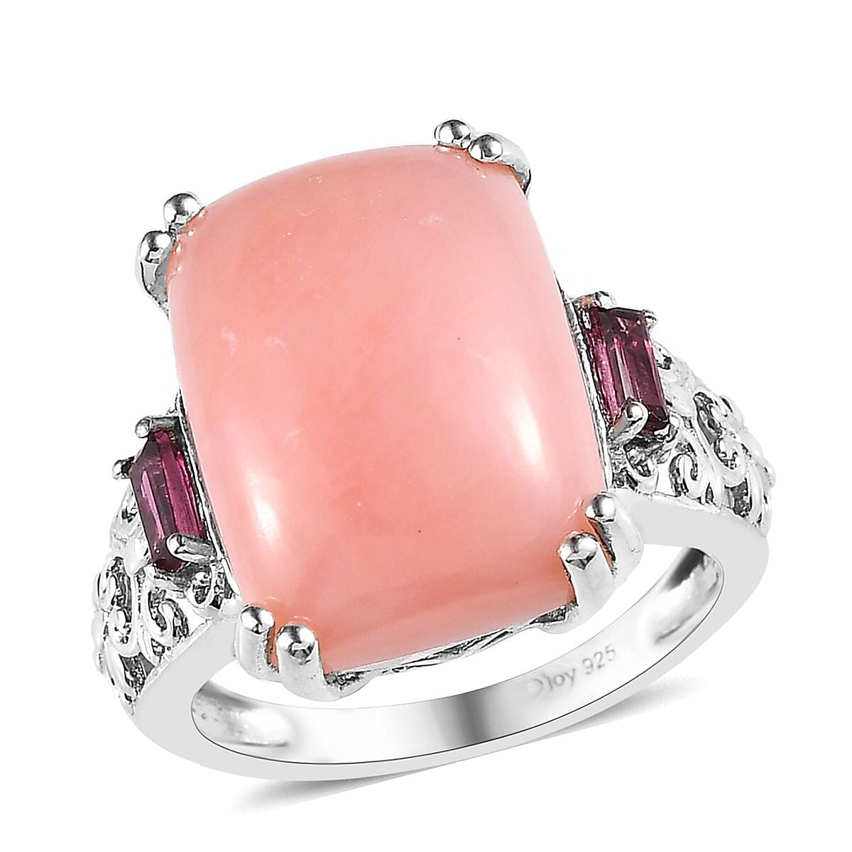 Premium Peruvian Pink Opal and Orissa Rhodolite Garnet Ring in Platinum Over Sterling Silver (Size 7.0) 9.00 ctw
