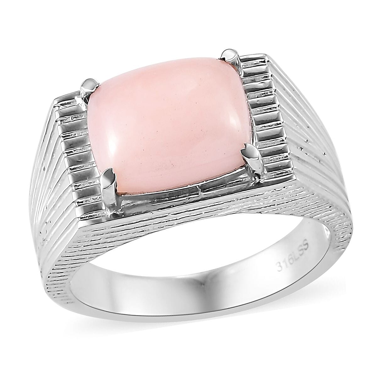 Premium Peruvian Pink Opal Men's Ring in Stainless Steel 4.25 ctw (Del. in 5-7 Days)