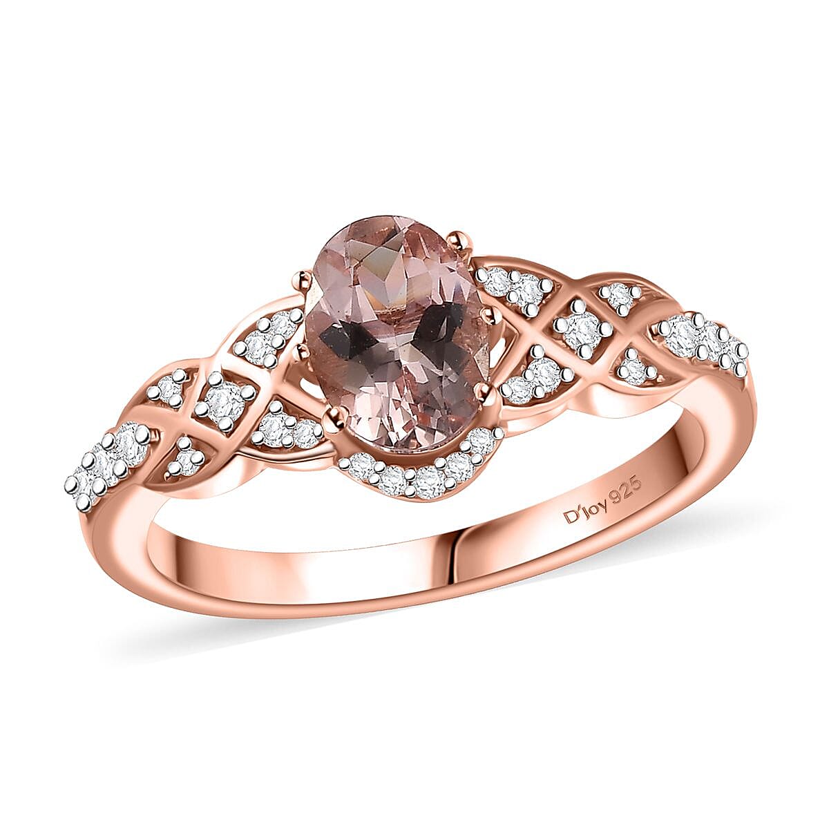 Premium Pink Morganite and Moissanite Ring in 18K Vermeil Rose Gold Over Sterling Silver (Size 7.0) 1.10 ctw