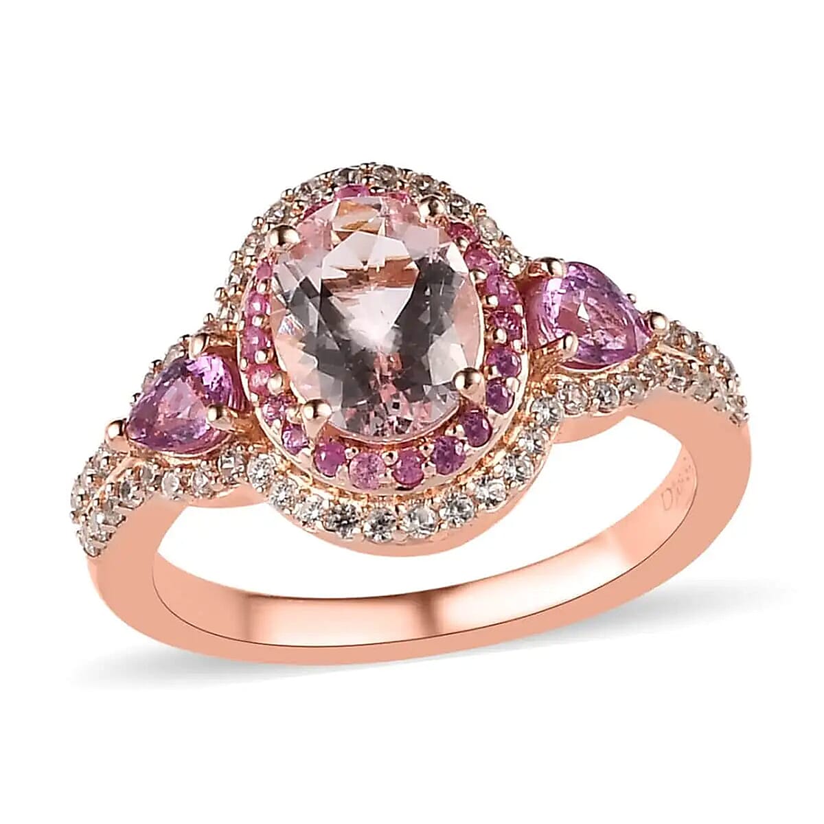 Premium Pink Morganite and Multi Gemstone Cocktail Ring in Vermeil Rose Gold Over Sterling Silver (Size 8.0) 2.10 ctw