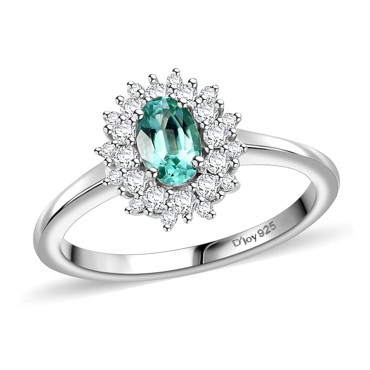 The premium Pirineu Lagoon tourmaline and moissanite ring in sterling silver is a beautiful floral ring for women. Inspired by the sunflower and symbolizing lasting happiness, it features a Pirineu Lagoon tourmaline encircled with round moissanite. This silver ring combines elegance with durability, making it perfect for any occasion.