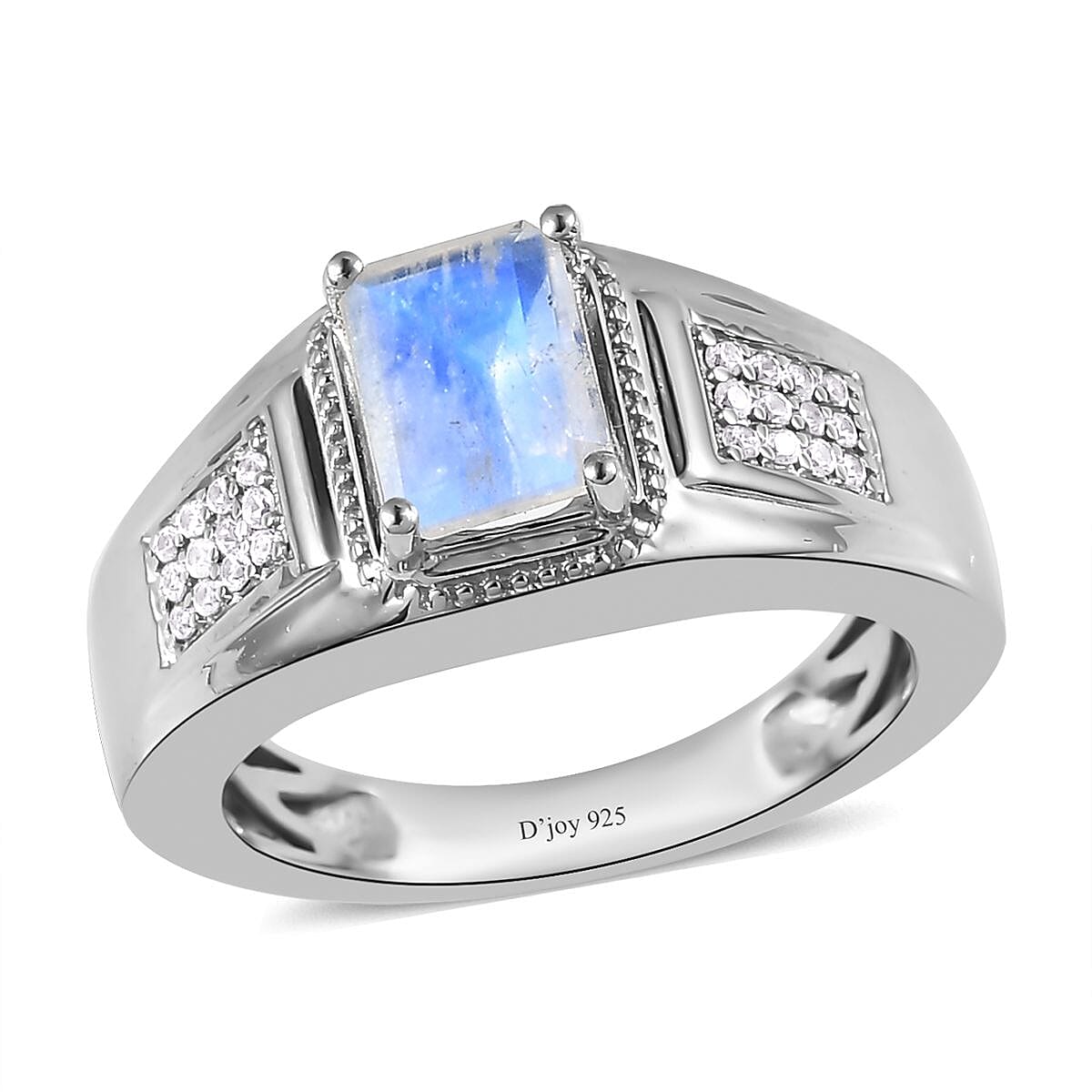 Premium Rainbow Moonston and White Zircon Men's Ring in Platinum Over Sterling Silver 1.90 ctw