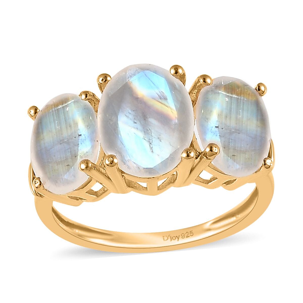 Premium Rainbow Moonstone and Diamond 3 Stone Ring in Vermeil Yellow Gold Over Sterling Silver (Size 7.0) 4.35 ctw