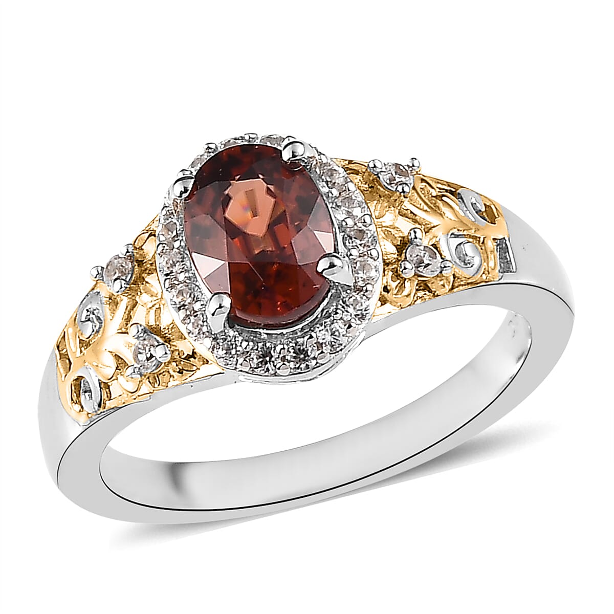 Premium Red Zircon and White Zircon Ring in Vermeil Yellow Gold and Platinum Over Sterling Silver (Size 7.0) 1.70 ctw