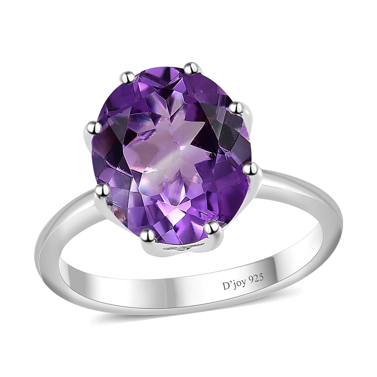 Premium Rose De France Amethyst (Ovl) Solitaire Ring in Sterling Silver (Size 10.0) 4.35 ctw