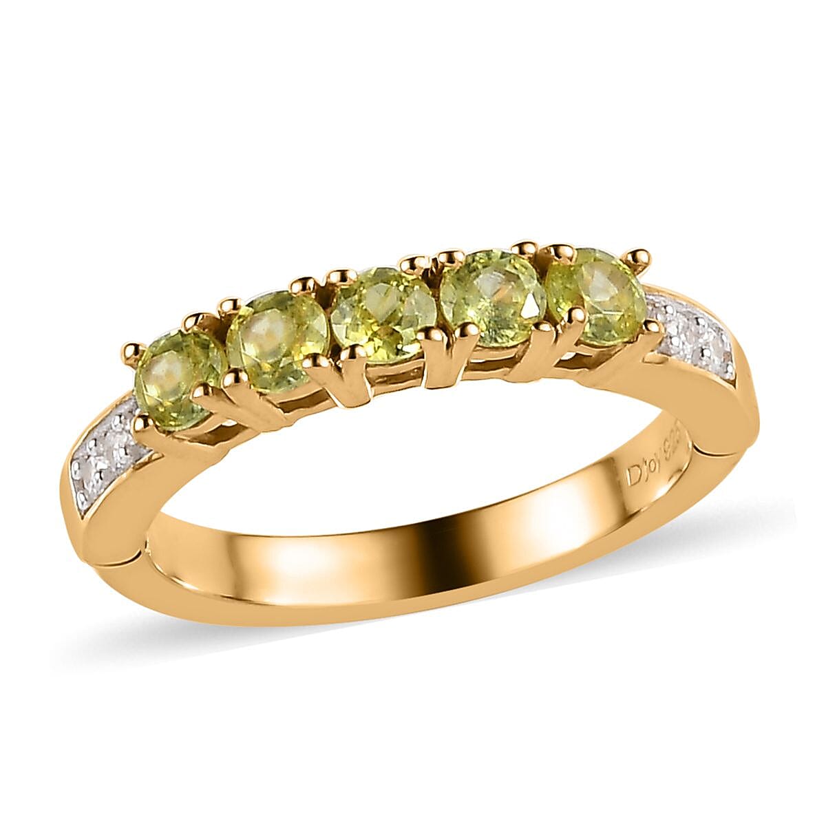 Premium Sava Sphene and White Zircon Band Ring in Vermeil Yellow Gold Sterling Silver (Size 6.0) 0.85 ctw