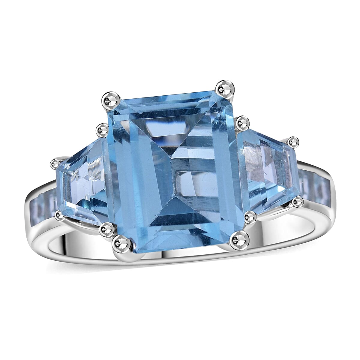 Premium Sky Blue Topaz Ring in Platinum Over Sterling Silver (Size 7.0) 5.55 ctw