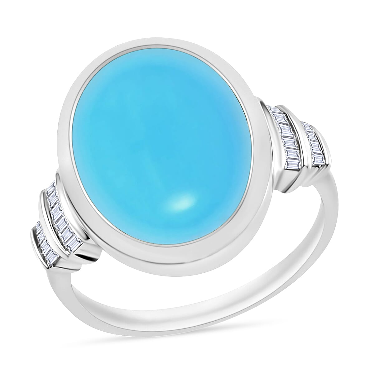 Premium Sleeping Beauty Turquoise and Diamond 8.41 ctw Ring in Rhodium Over Sterling Silver (Size 7) 8. (Del. in 10-12 Days)