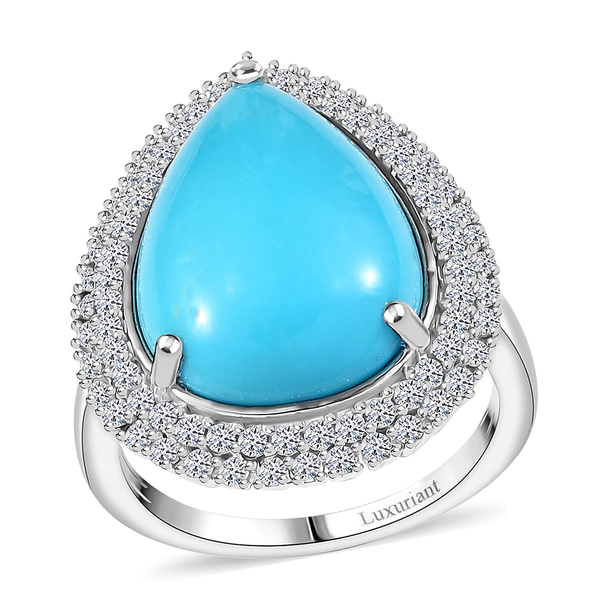 Premium Sleeping Beauty Turquoise and G-H SI Luxuriant Lab Grown Diamond 9.00 ctw Ure Bloom Ring in Rhodium Over Sterling Silver (Size 8.0)