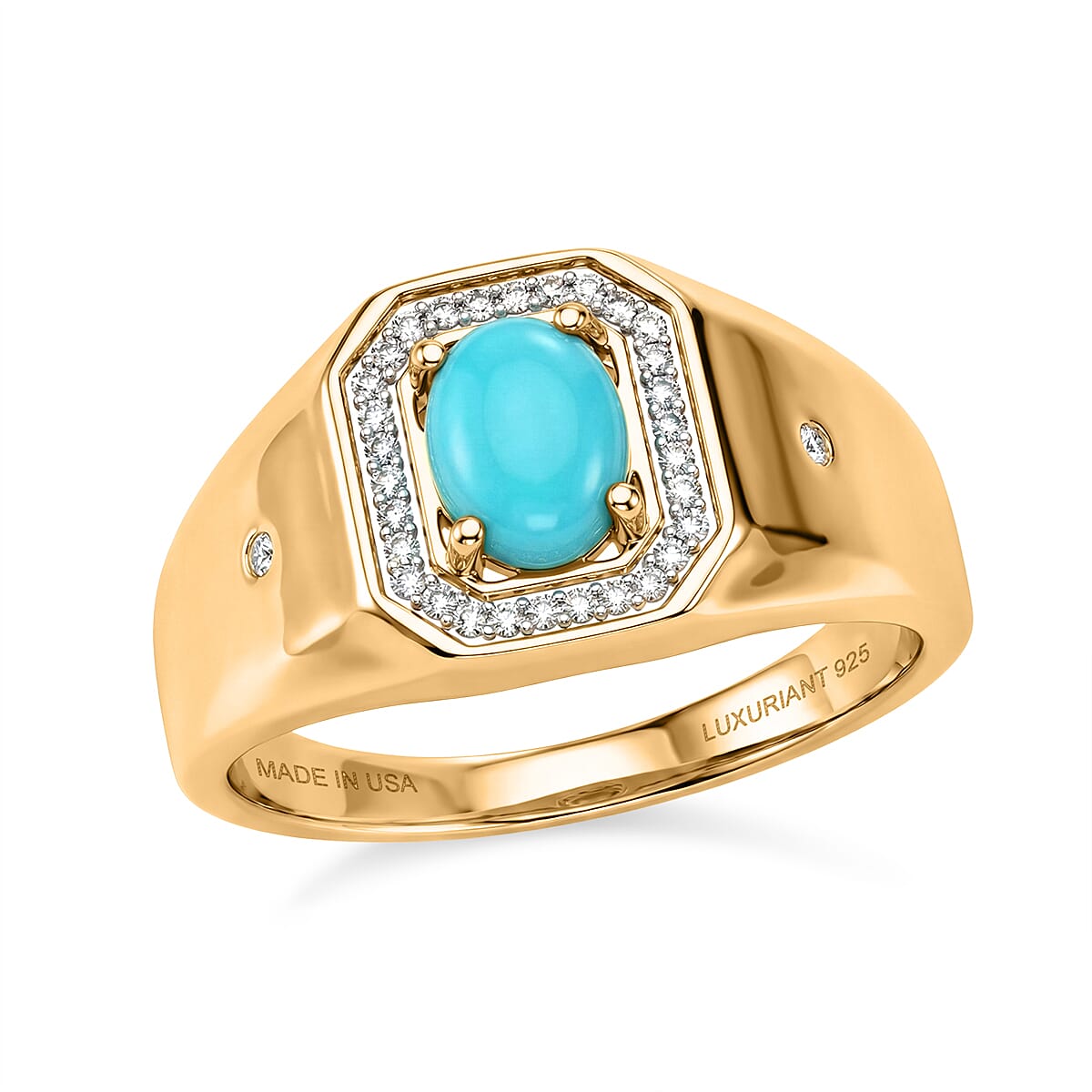 Premium Sleeping Beauty Turquoise and Luxuriant Lab Grown Diamond G-H SI 1.35 ctw Men's Ring in 18K Vermeil Yellow Gold Over Sterling Silver (Size 10.0)
