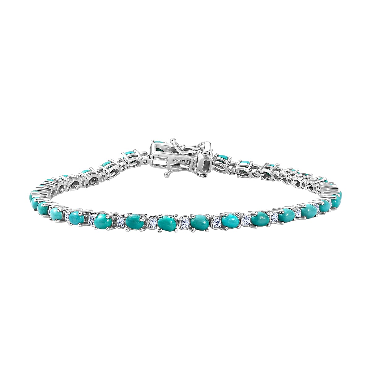 Premium Sleeping Beauty Turquoise and Luxuriant Lab Grown Diamond G-H SI 5.00 ctw Skyline Legacy Bracelet in Rhodium Over Sterling Silver (8.00 In)