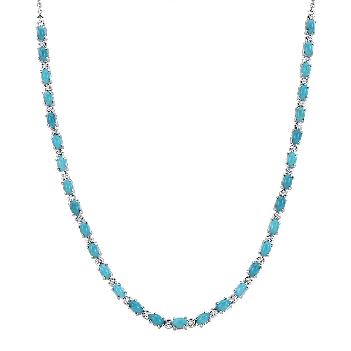 Premium Sleeping Beauty Turquoise and Luxuriant Lab Grown Diamond G-H SI 8.50 ctw Skyline Legacy Necklace in Rhodium Over Sterling Silver 18-20 Inches (Del. in 8-10 Days)