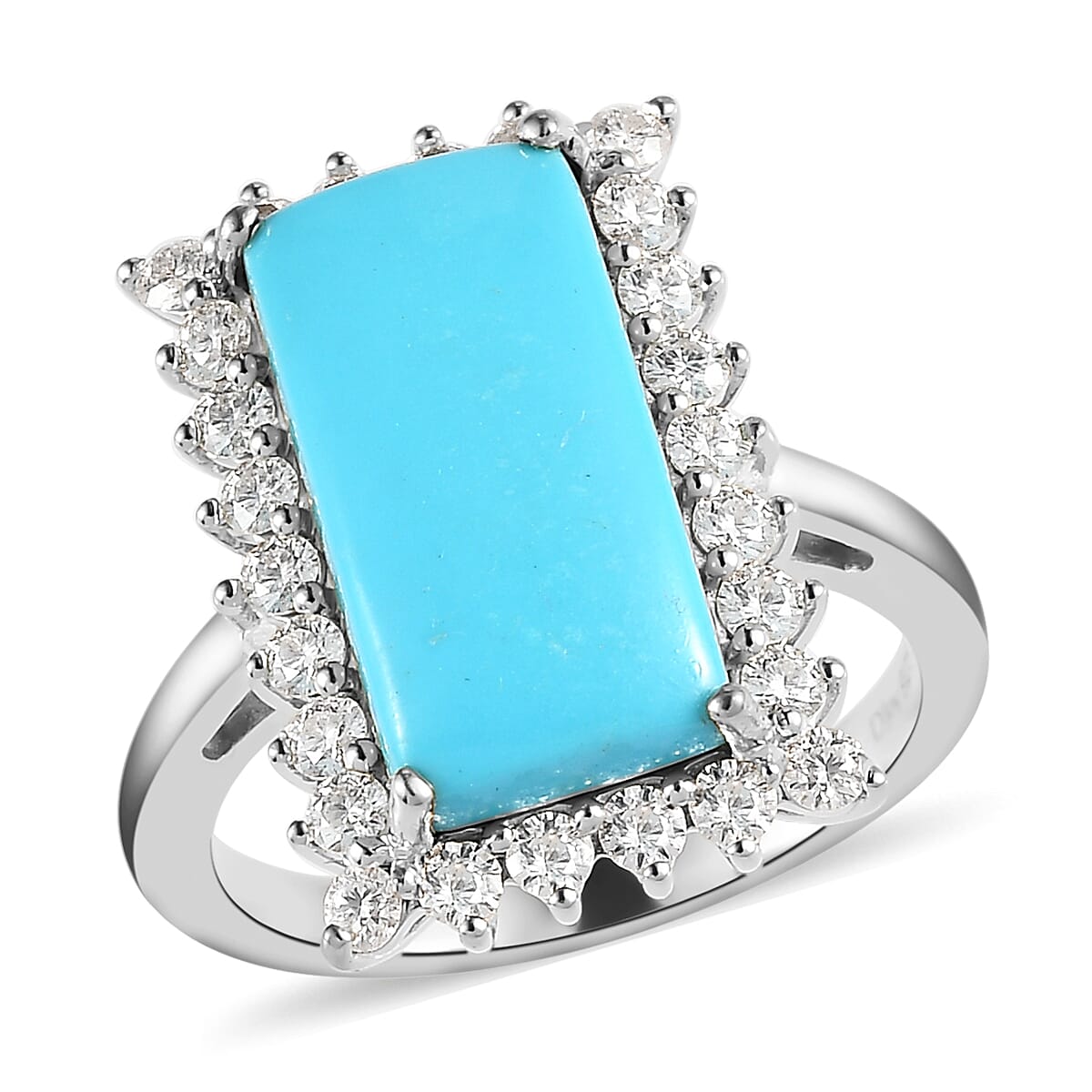 Premium Sleeping Beauty Turquoise and Moissanite Elongated Ring in Platinum Over Sterling Silver (Size 7.0) 5.15 ctw