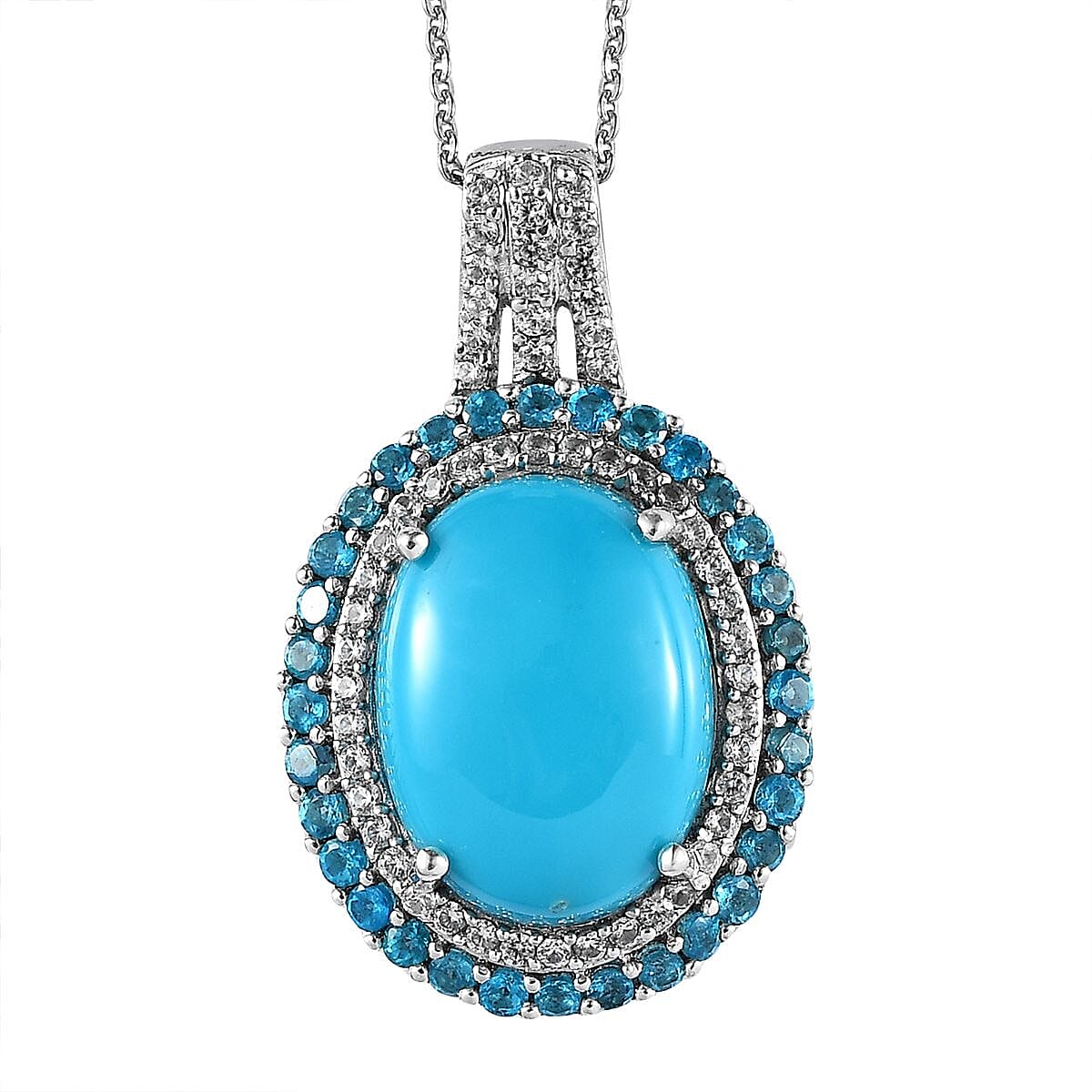 Unleash the epitome of elegance with our premium Sleeping Beauty turquoise and multi-gemstone double halo pendant necklace in platinum over sterling silver. This exquisite masterpiece is not just a piece of jewelry; it's a symbol of timeless beauty and sophistication. Elevate your style and make a statement with this enchanting necklace that seamlessly blends luxury and craftsmanship. As you wear it, let the allure of the Premium Sleeping Beauty Turquoise captivate onlookers, while the intricate design and platinum over sterling silver setting add an extra layer of opulence to your every movement.