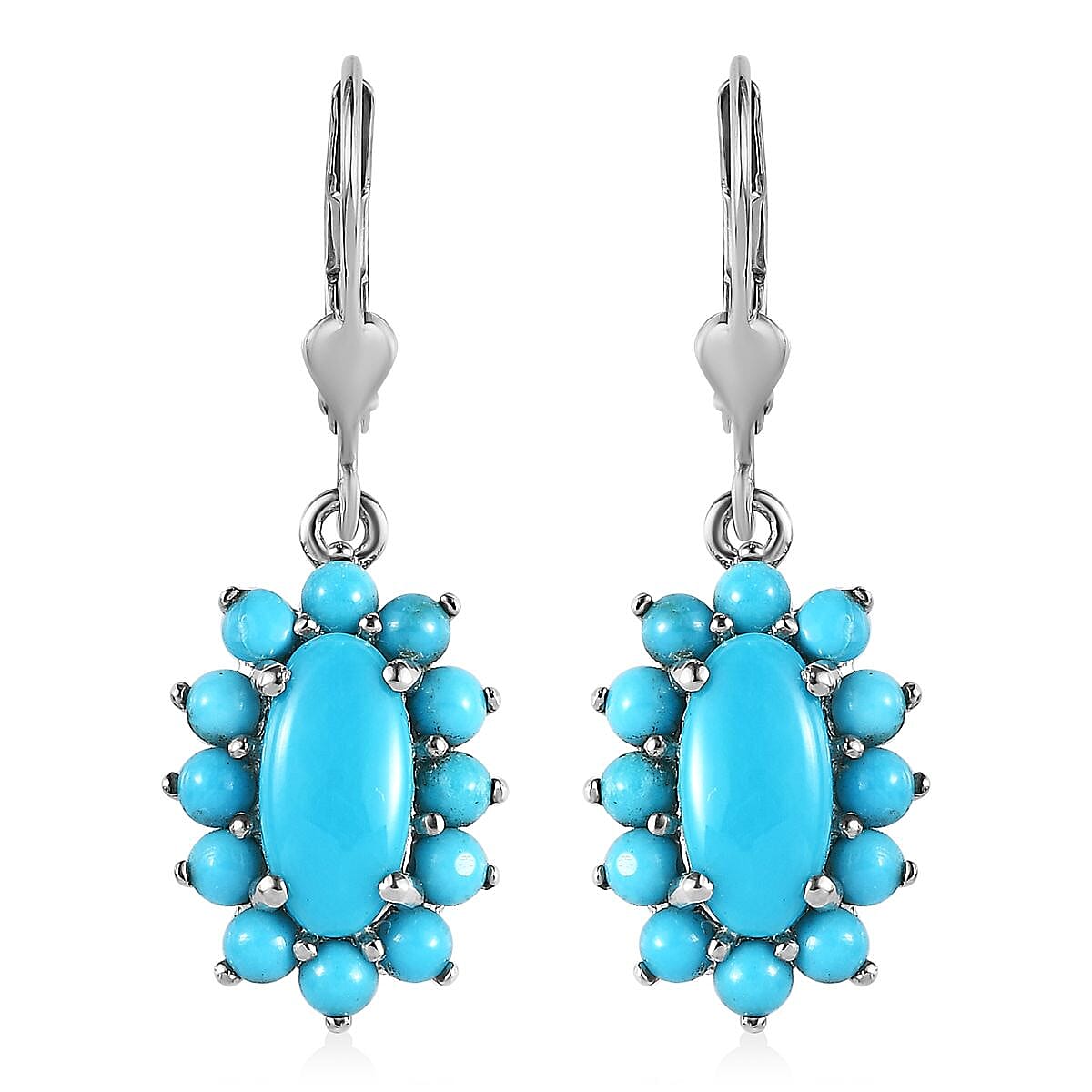 Premium Sleeping Beauty Turquoise Lever Back Earrings in Platinum Over Sterling Silver 4.60 ctw