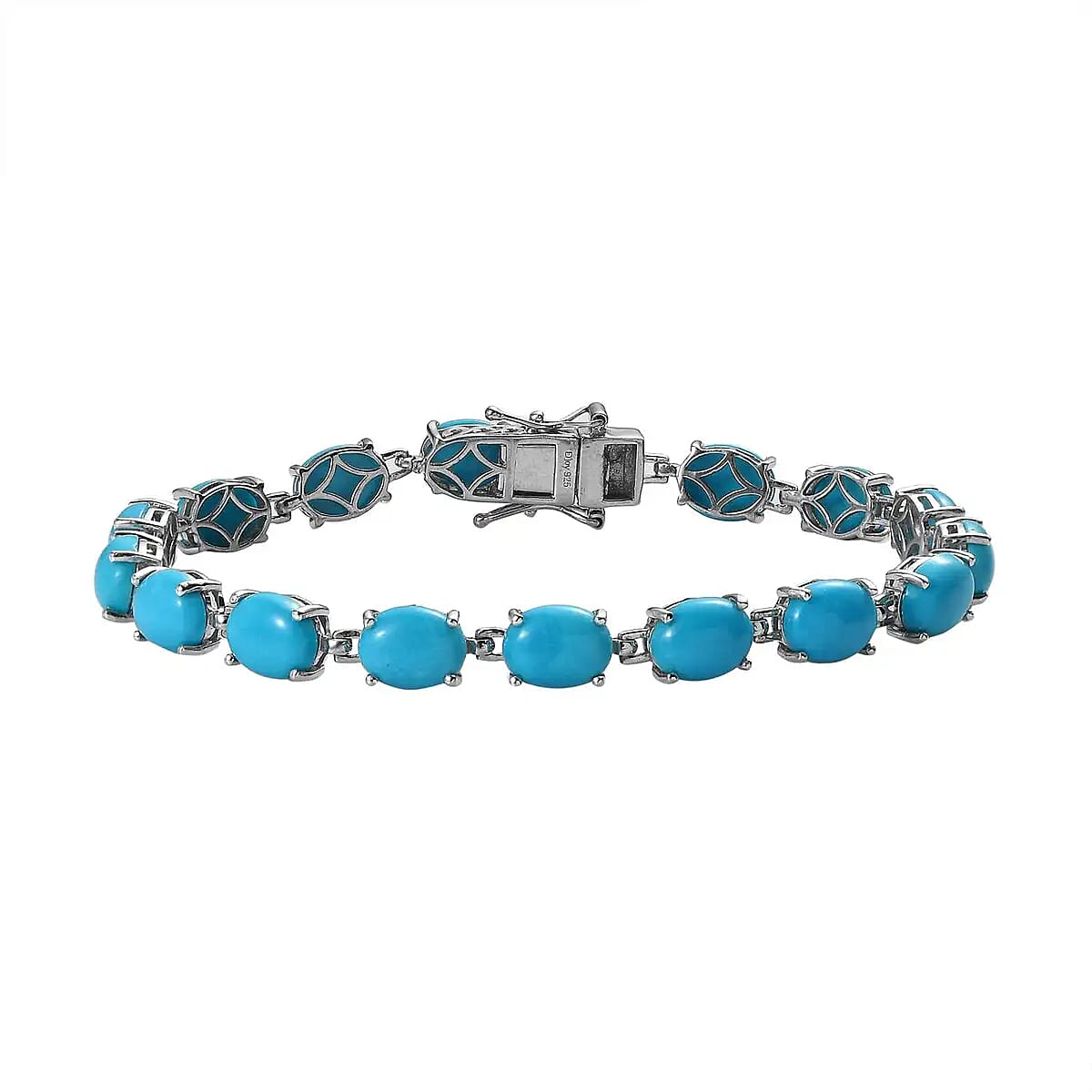 Premium Sleeping Beauty Turquoise Tennis Bracelet in Platinum Over Sterling Silver (8.00 In) 23.35 ctw