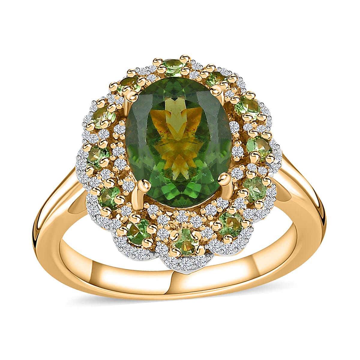 Premium Tanzanian Natural Green Apatite and Multi Gemstone Floral Ring in Vermeil Yellow Gold Over Sterling Silver (Size 6.0) 2.75 ctw
