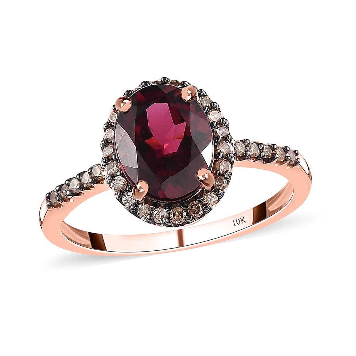 Premium Tanzanian Wine Garnet and I3 Natural Champagne Diamond 2.50 ctw Halo Ring in 10K Rose Gold (Size 8.0)