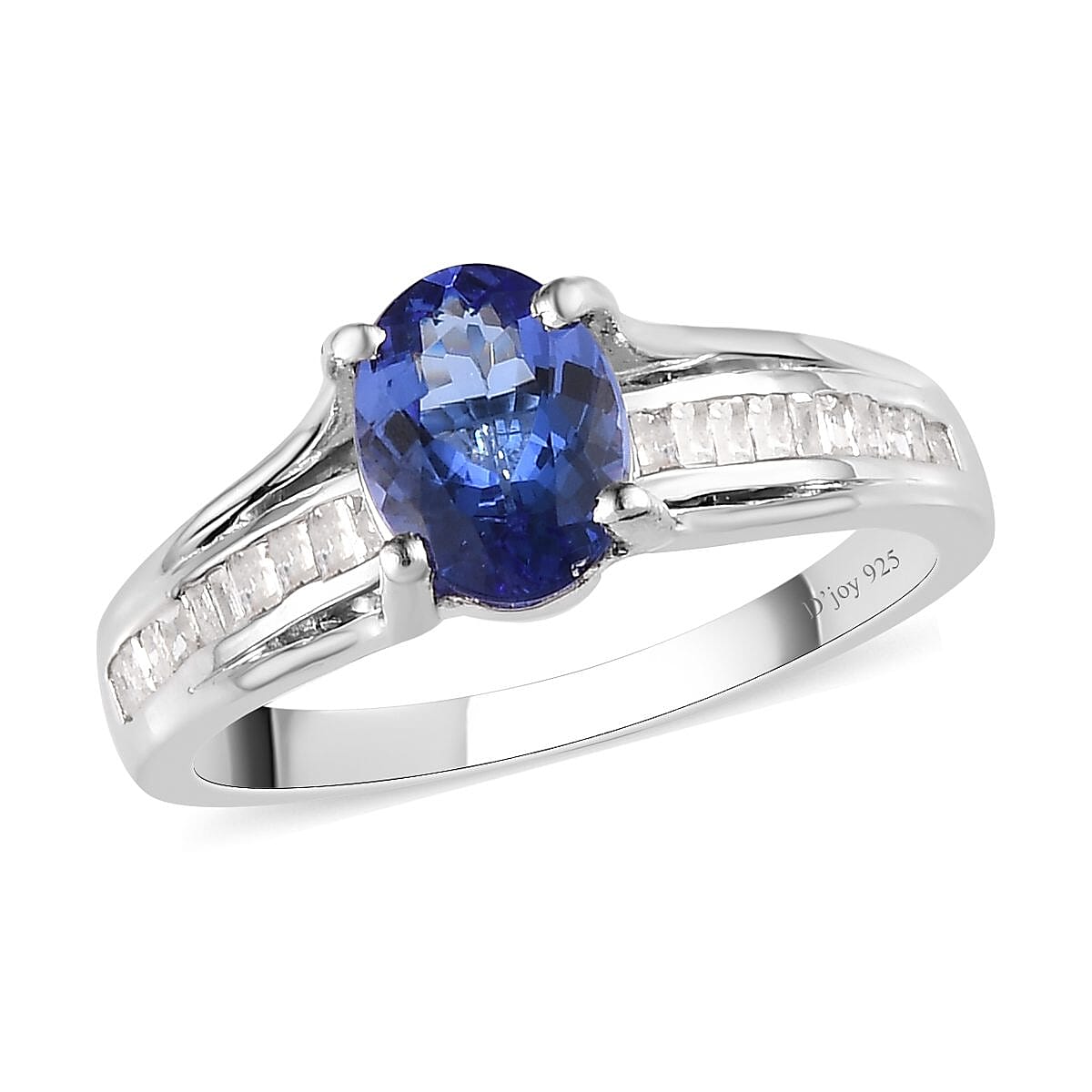 Premium Tanzanite and Diamond Ring in Platinum Over Sterling Silver (Size 7.0) 1.40 ctw