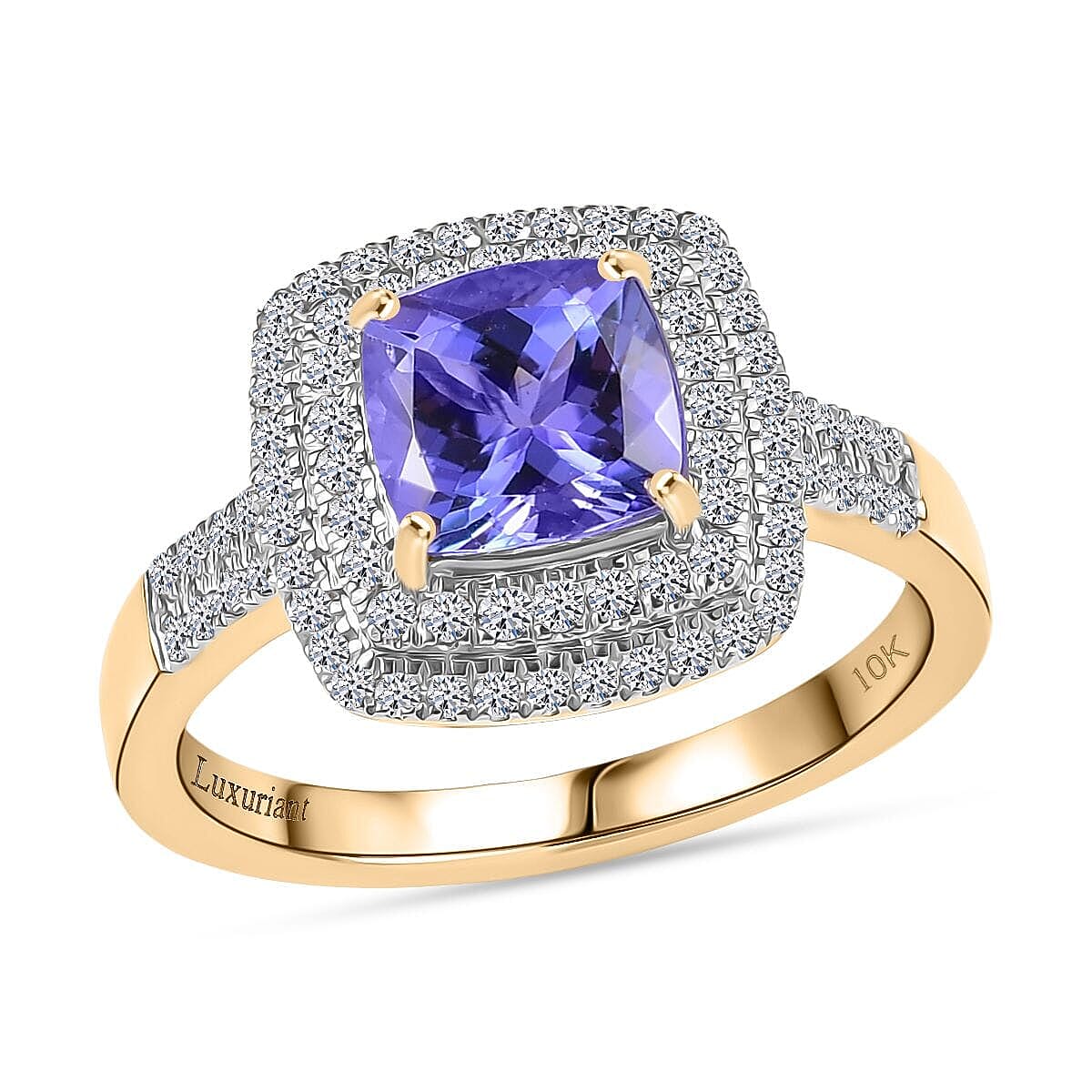 Shine with confidence wearing the tanzanite and Luxuriant lab-grown diamond ring in 10K yellow gold. The rich purple-blue tanzanite creates an aura of distinction and luxury. You'll cherish this halo ring for countless memorable moments and elegant occasions.