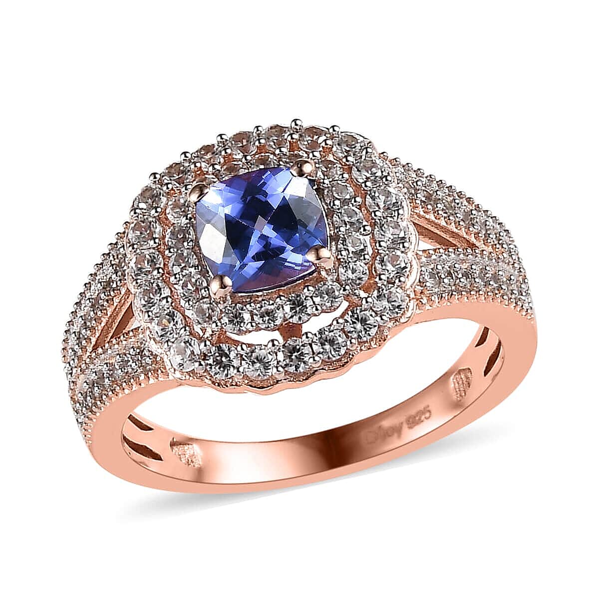 Premium Tanzanite and White Zircon Split Shank Ring in Vermeil Rose Gold Over Sterling Silver (Size 9.0) 1.85 ctw