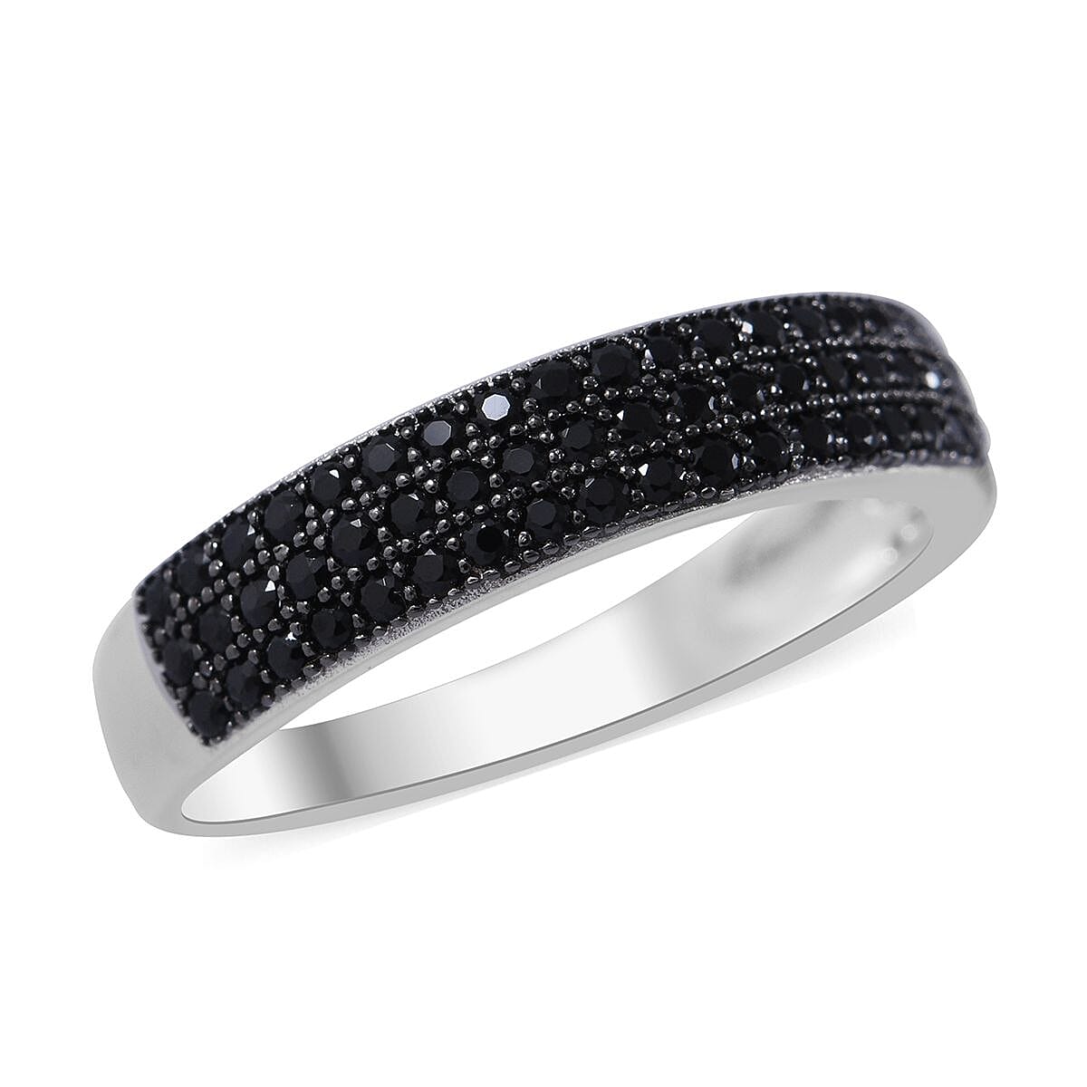 Premium Thai Black Spinel Ring in Rhodium Over Sterling Silver (Size 7.0) 1.50 ctw