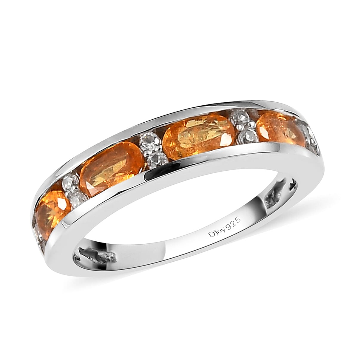 Premium Viceroy Spessartine Garnet and White Zircon Half Eternity Band Ring in Platinum Over Sterling Silver (Size 9.0) 1.50 ctw