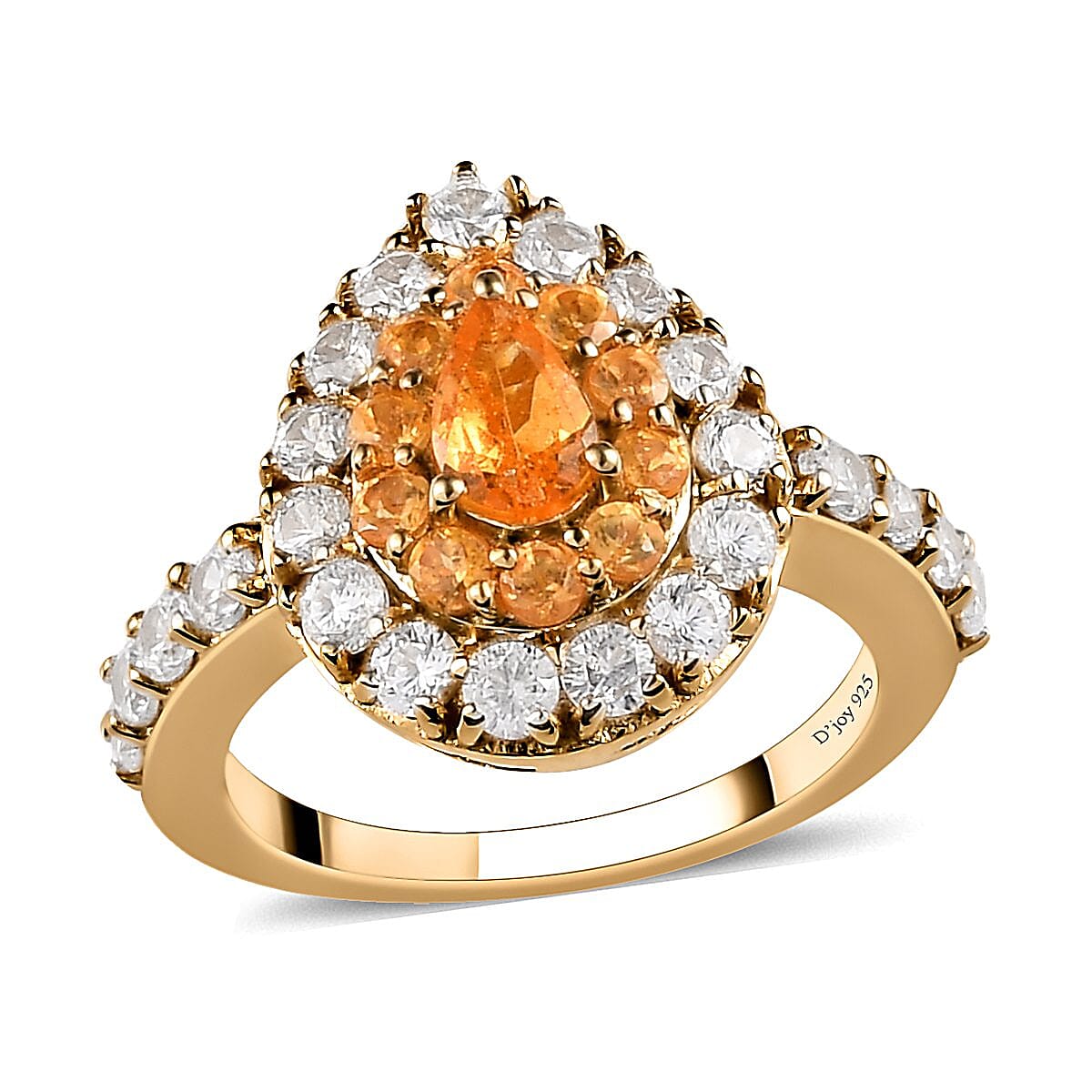 Premium Viceroy Spessartine Garnet and White Zircon Halo Ring in Vermeil Yellow Gold Over Sterling Silver (Size 8.0) 2.50 ctw