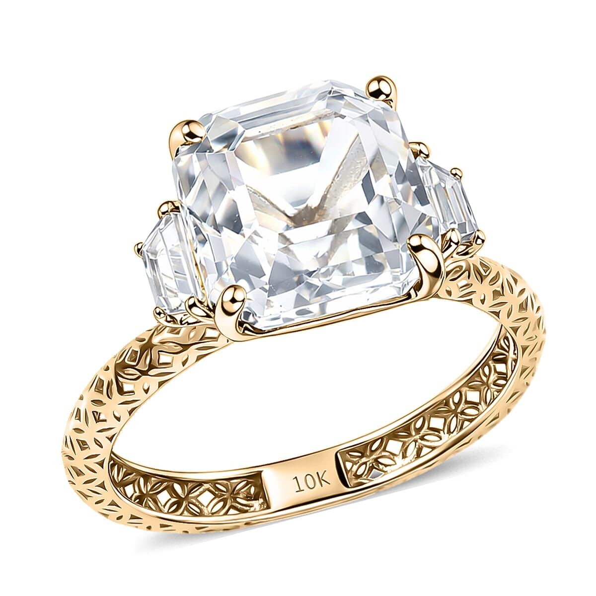Premium White Topaz 6.80 ctw Classic Crest Ring in 10K Yellow Gold (Size 7.0) (Del. in 8-10 Days)