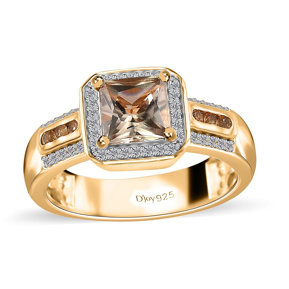 Are you ready to grace your fingers with a touch of celestial elegance? Look no further than our captivating turkizite, yellow sapphire, and zircon halo ring, crafted in luxurious yellow gold vermeil plated sterling silver. This mesmerizing zircon women's ring will effortlessly elevate your style and draw admiration wherever you go.