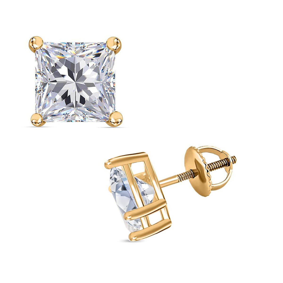 Discover timeless elegance with these princess-cut luxuriant lab-grown diamond earrings in 14K yellow gold. Perfect for special occasions or daily wear, these stud earrings for women are ethically sourced and boast unrivaled sparkle in a sustainable design.