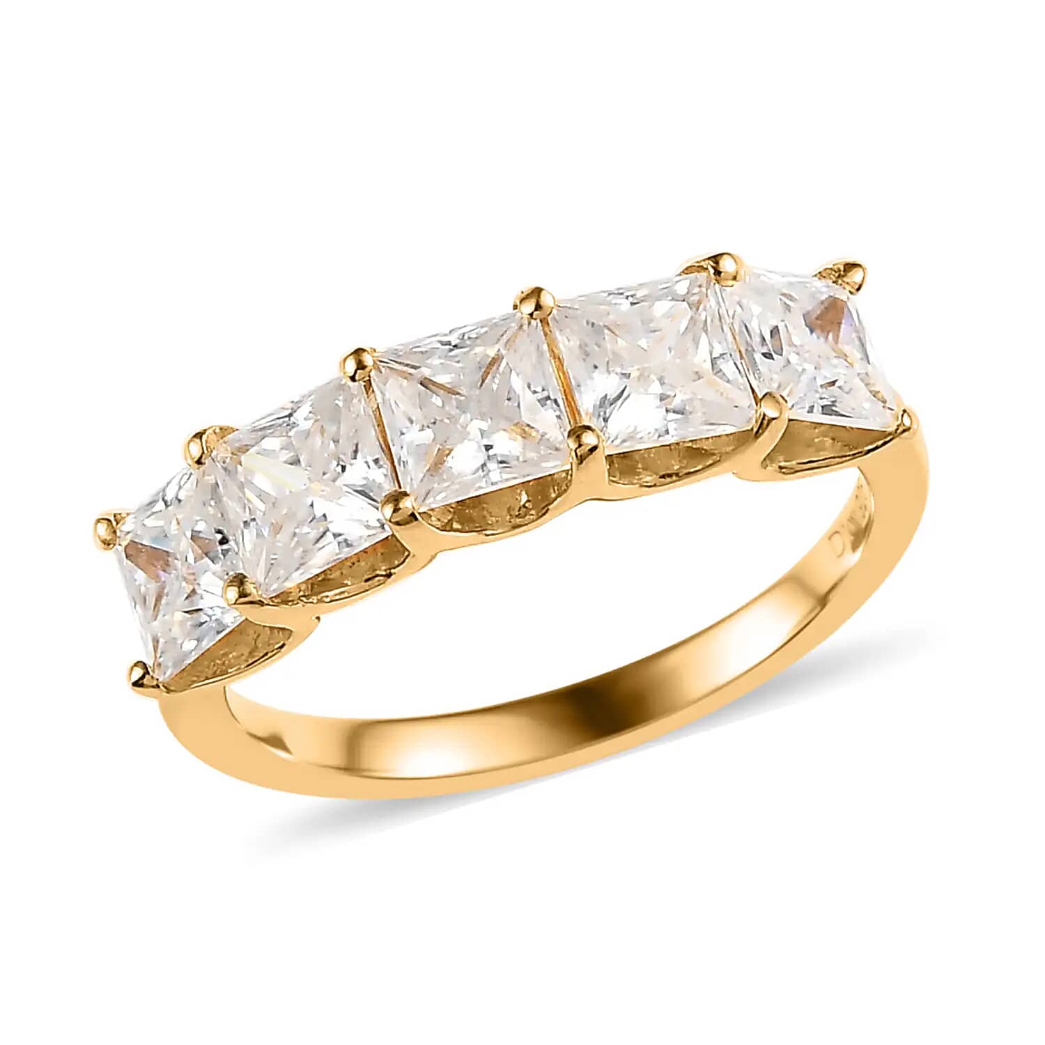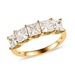 Princess Cut Moissanite 1.85 ctw 5 Stone Ring, Moissanite Ring, Vermeil Yellow Gold Over Sterling Silver Ring, Engagement Ring (Size 5.00)