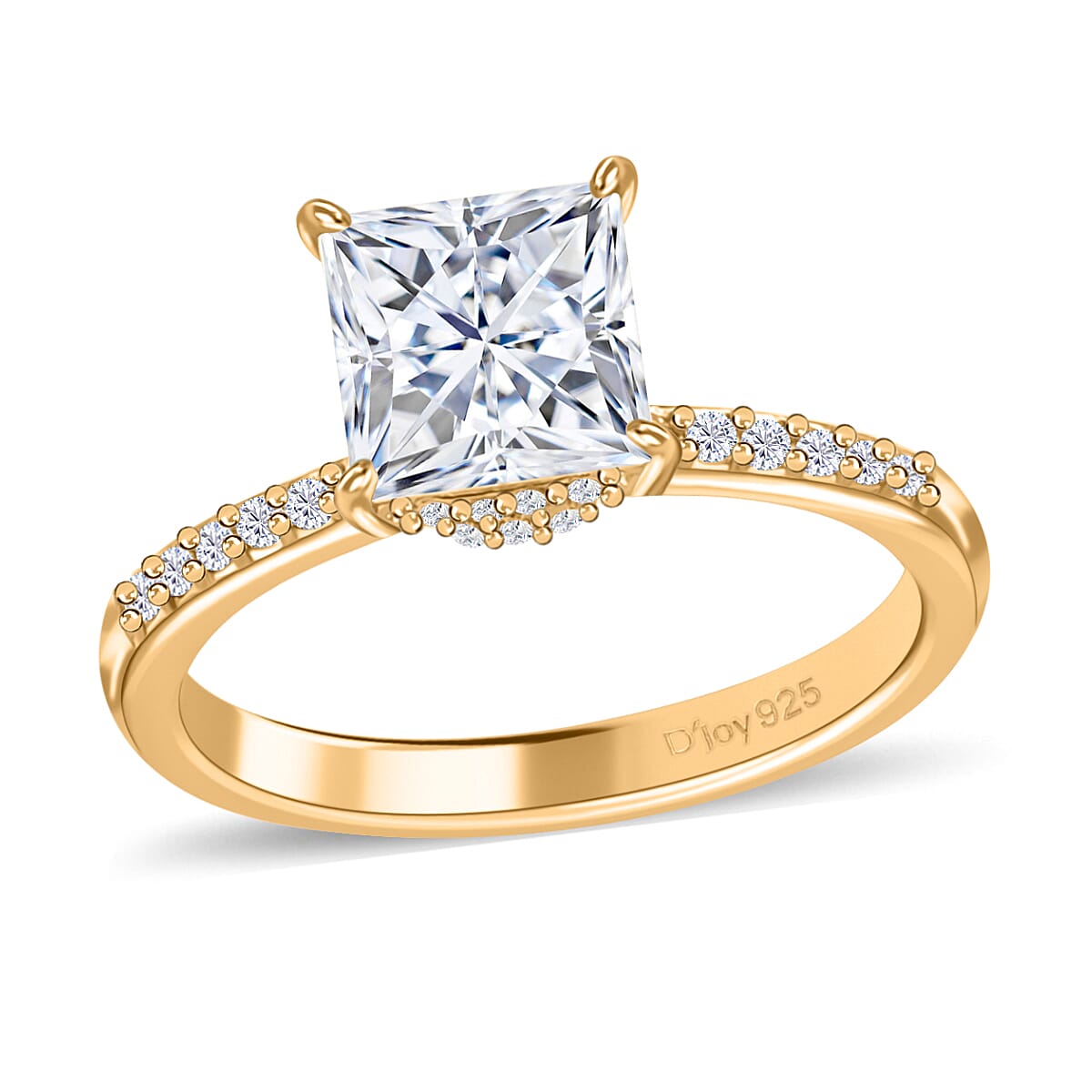 Princess Cut Moissanite Ring in Vermeil Yellow Gold Over Sterling Silver, Promise Rings (Size 7.0) 2.00 ctw