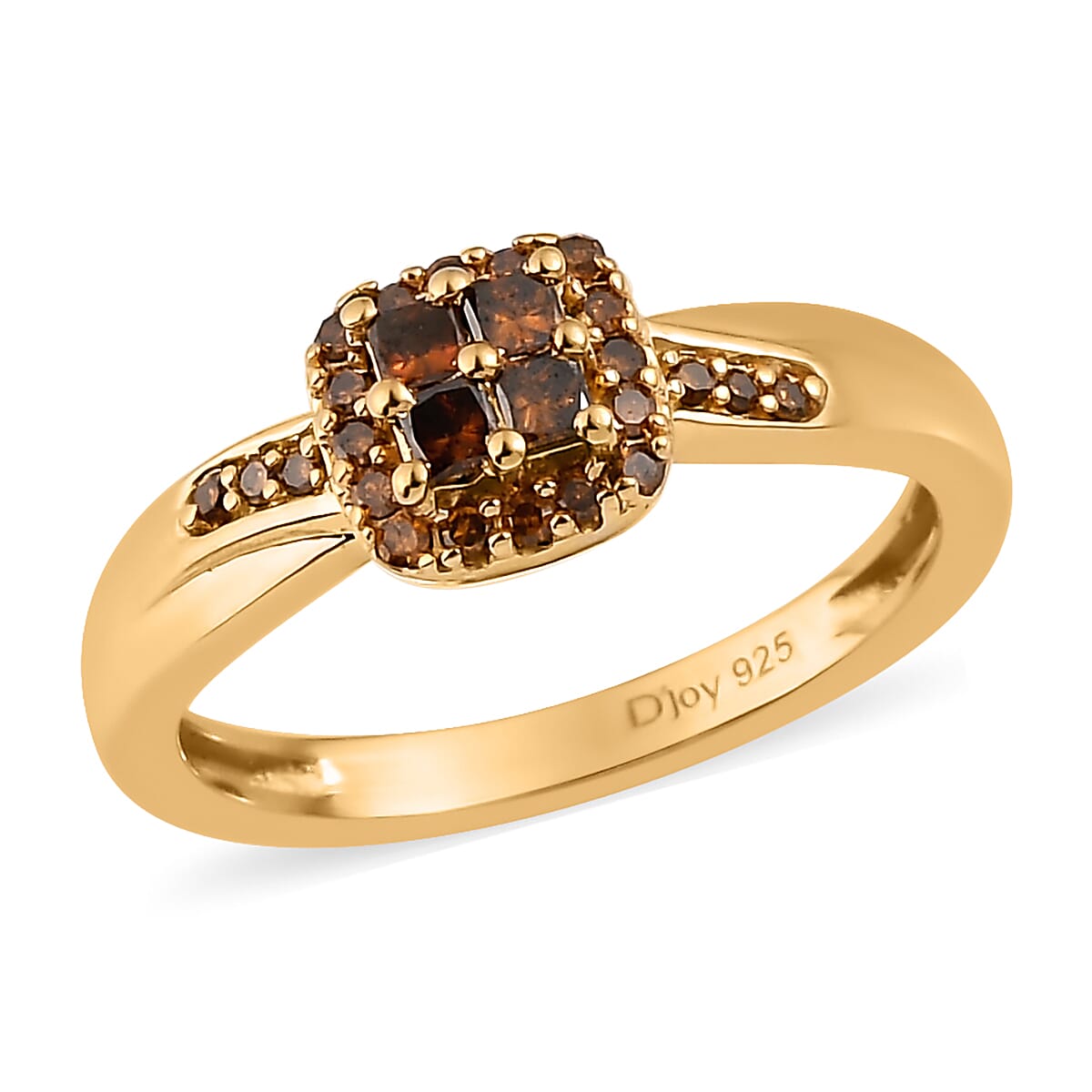 Princess Cut Orange Diamond (IR) Halo Ring in Vermeil YG Over Sterling Silver (Size 10.0) 0.33 ctw