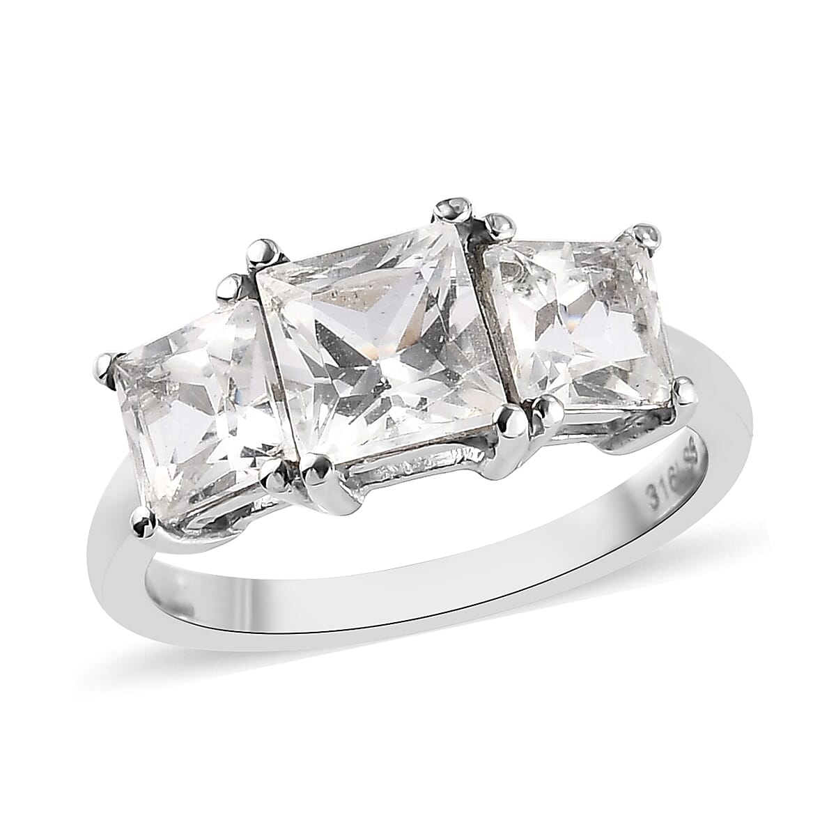 Princess Cut White Topaz 3 Stone Ring in Stainless Steel (Size 9.0) 3.10 ctw | Tarnish-Free, Waterproof, Sweat Proof Jewelry