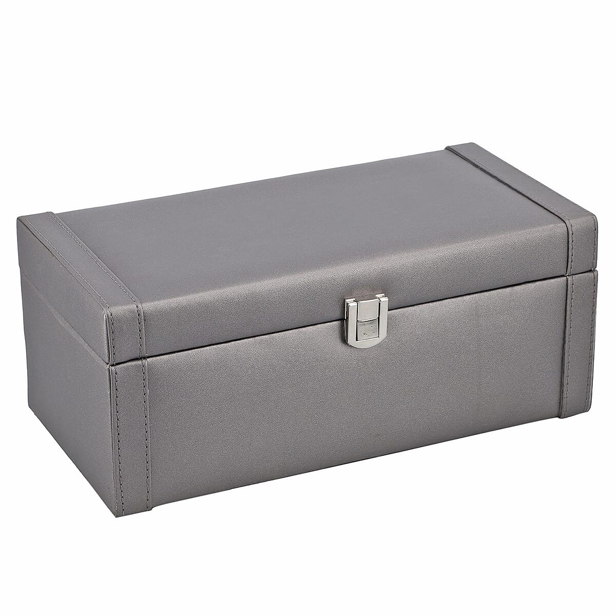 This faux leather wooden jewelry box is perfect for displaying your accessories in an organized manner. This box is portable and easy to handle. Made of genuine material, this wooden jewelry box exhibits a beautiful display and grabs all attention with its design.