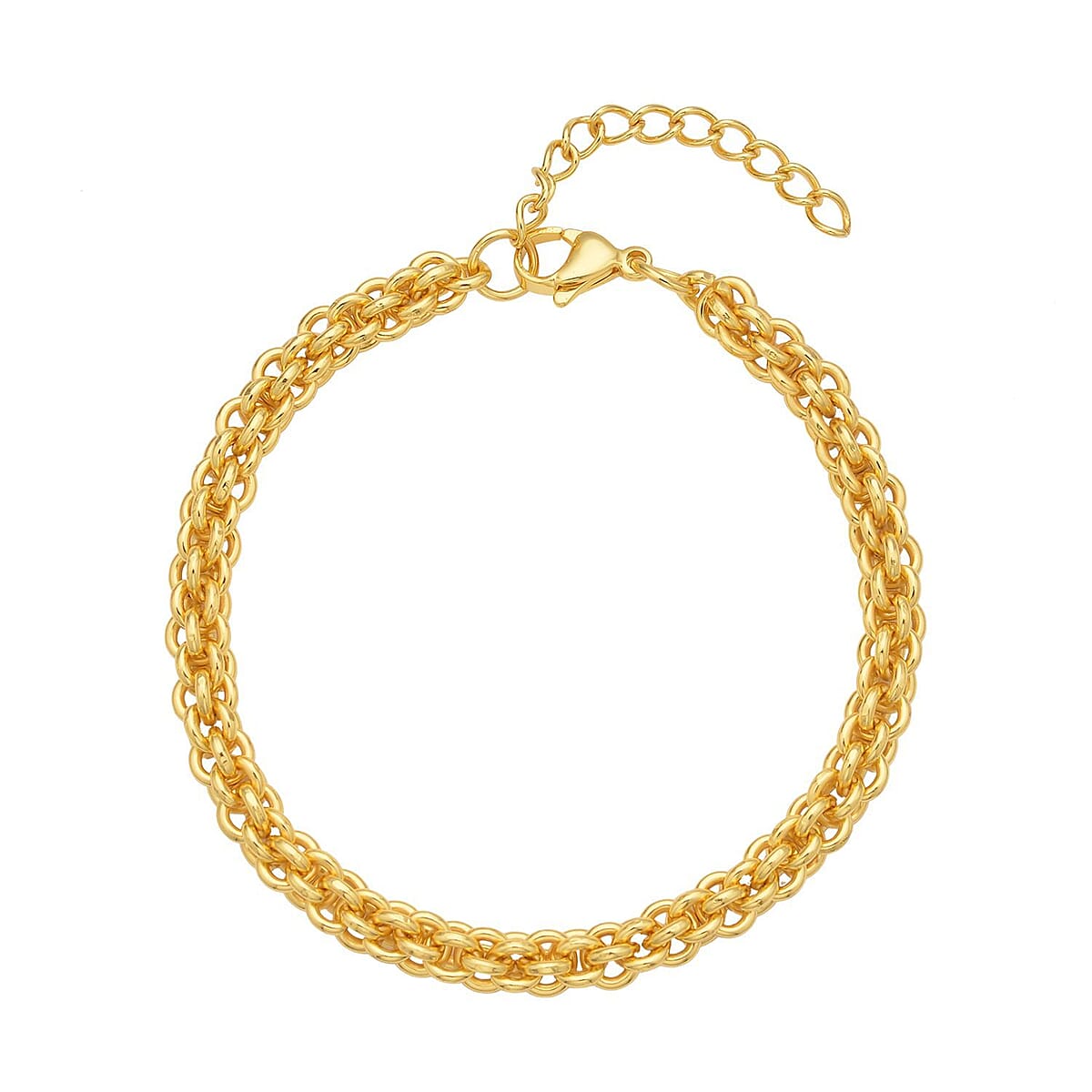 Inspired by the pumpkin chain pattern, this bracelet speaks vividly about the modern interpretation of classic link style of 70’s. Chain pattern symbolizes interconnectivity and interdependence. These chain designs are evergreen as they modified with changing time, giving a classic rich appearance to the outfits. The grooves allow the other links with same width, depth, and length to connect snuggly and this process is repeated to design the multiple layers of the link bracelet that are connected, creating a uniform bracelet. The links are sleek with grooves on the edges. This chain bracelet offers smooth texture with intricate details. This bracelet is meticulously designed in a sturdy metal, exuding lustrous hues from all the edges. The artisans have extended their craftsmanship with care and construction.