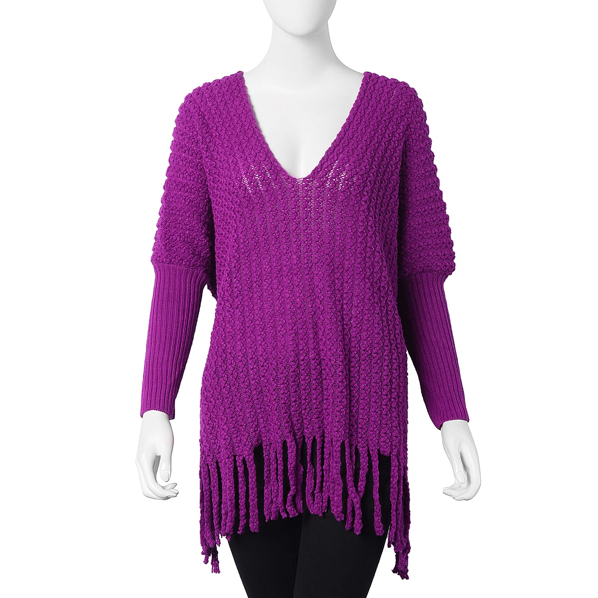 Purple Cable Knit Dolman Sleeve Sweater With Fringe (One Size Fits Most, 100% Acrylic)