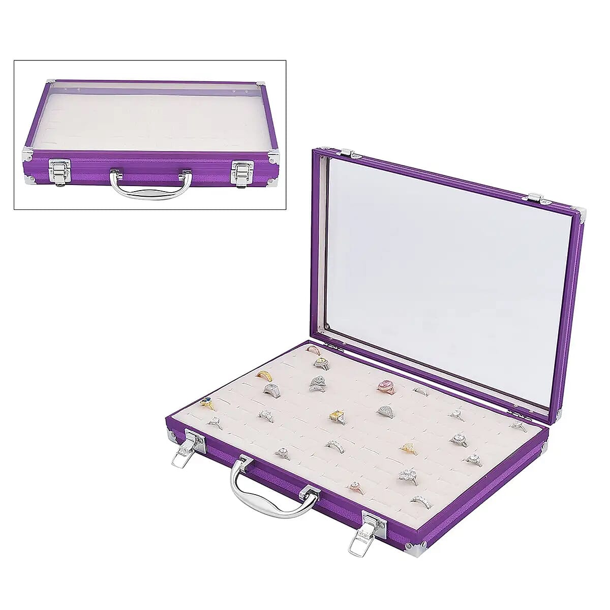 Purple Faux Leather Velvet Interior Ring Jewelry Box with Steel Color Lock and Handle