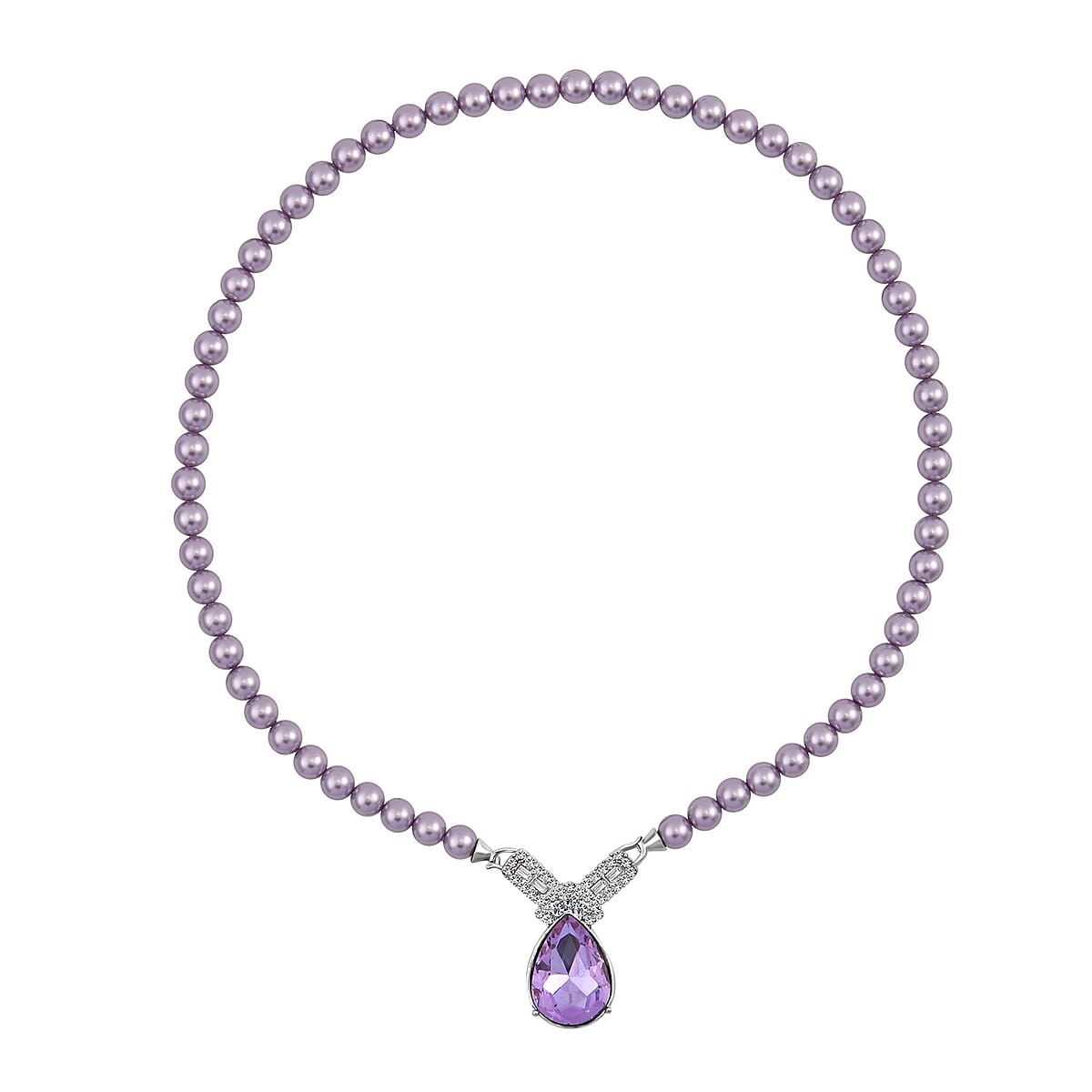 Purple Glass, Austrian Crystal and Purple Shell Pearl Pendant Necklace 20 Inches in Silvertone
