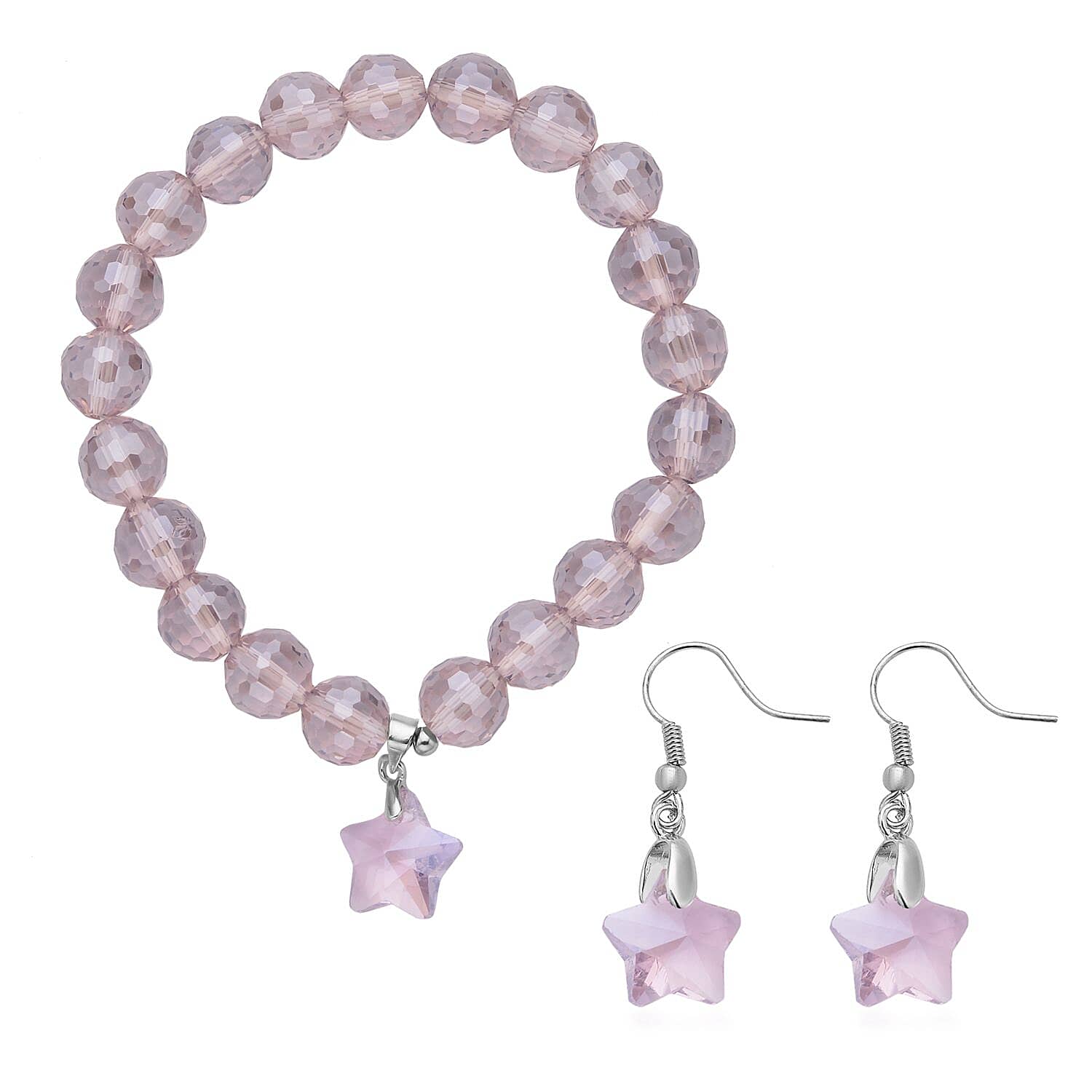 Enhance your collection with this glass-beaded star charm bracelet and earrings in durable metal. This elegant jewelry set for women features sparkling beads paired with playful star charms. Tarnish-free, waterproof, and sweat-proof, it offers lasting style and versatile wear for any occasion.