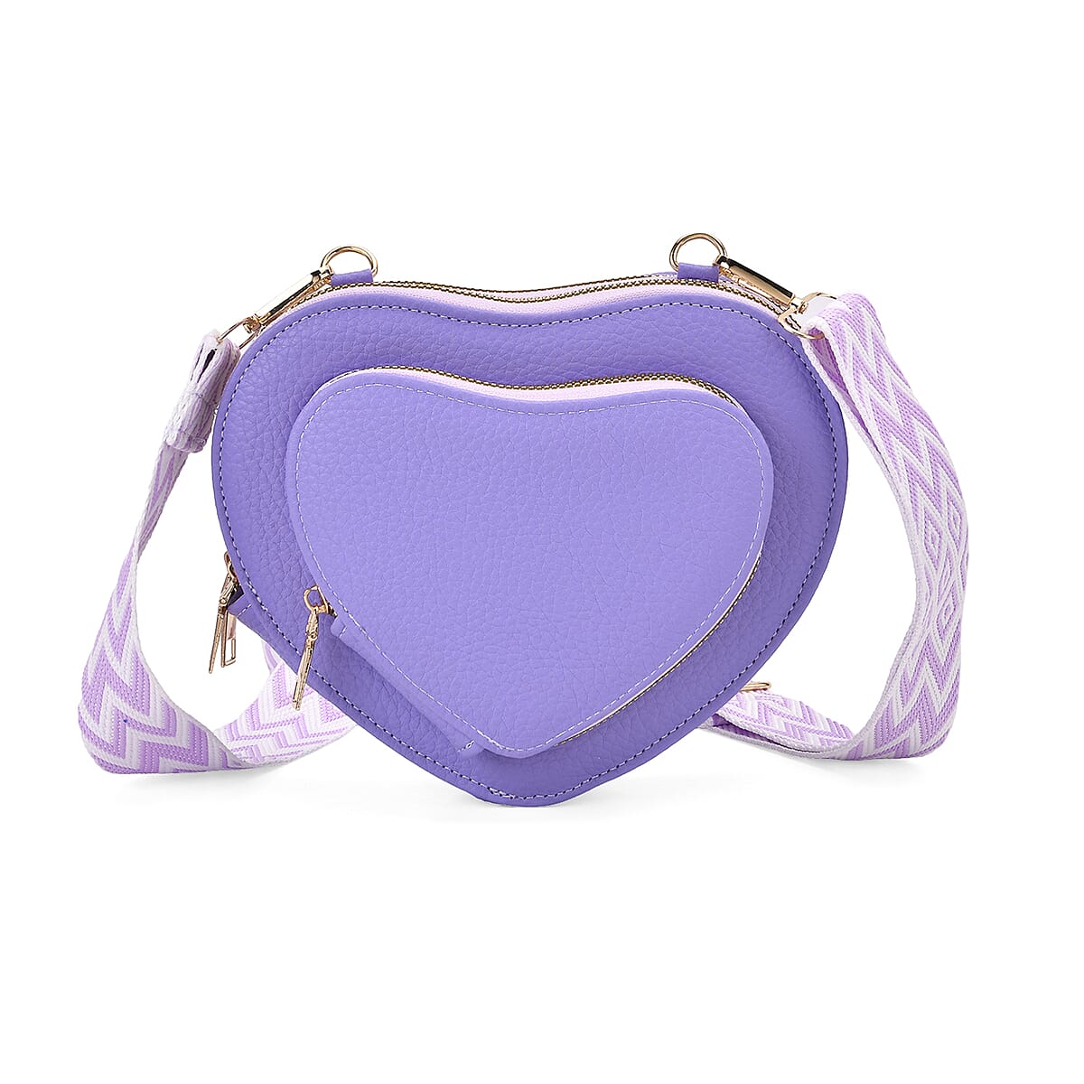Purple Heart Shape Faux Leather Crossbody Bag with Adjustable Shoulder Strap