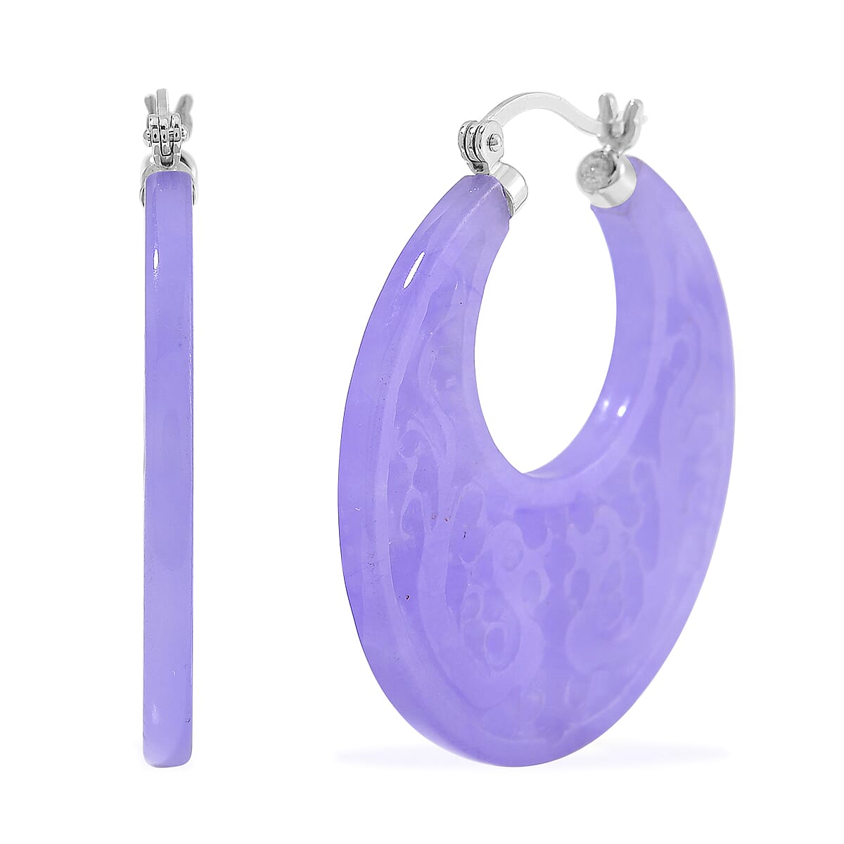 Purple Jade (D) 45.00 ctw Carved Crescent Earrings in Rhodium Over Sterling Silver